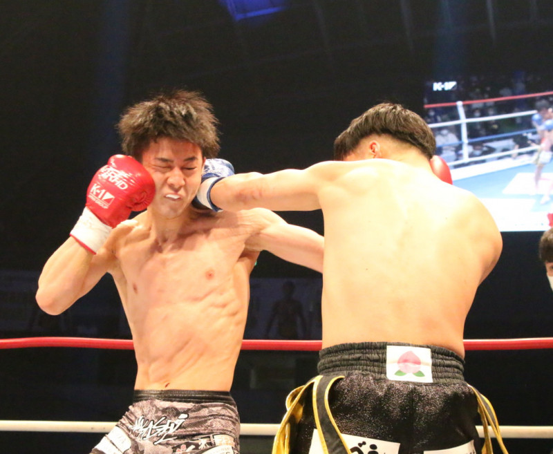 玖村(左)が1Rで鬼山を完璧に沈めた