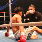 島野(左)が自慢の拳で卜部に襲い掛かる