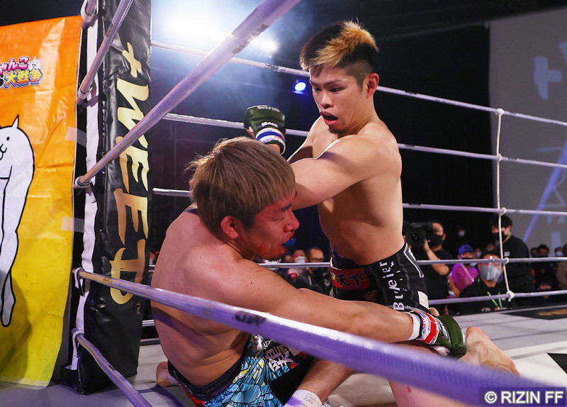 肘打ちを叩き込む鈴木