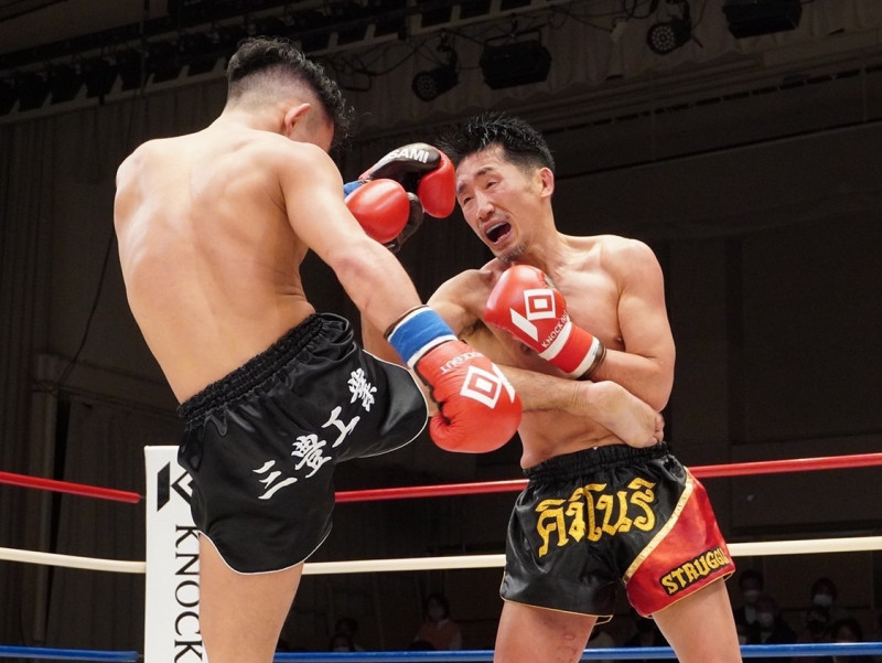 咆哮しながら攻めていく松﨑(右)
