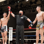 力也(左)が攻め続けて判定勝利