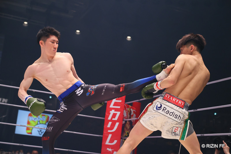 キックで攻める佐藤