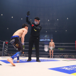佐藤(右)が足を負傷、試合はノーコンテストに