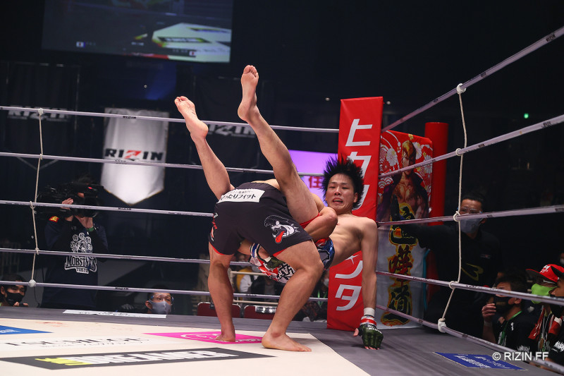 アキラがテイクダウンに成功