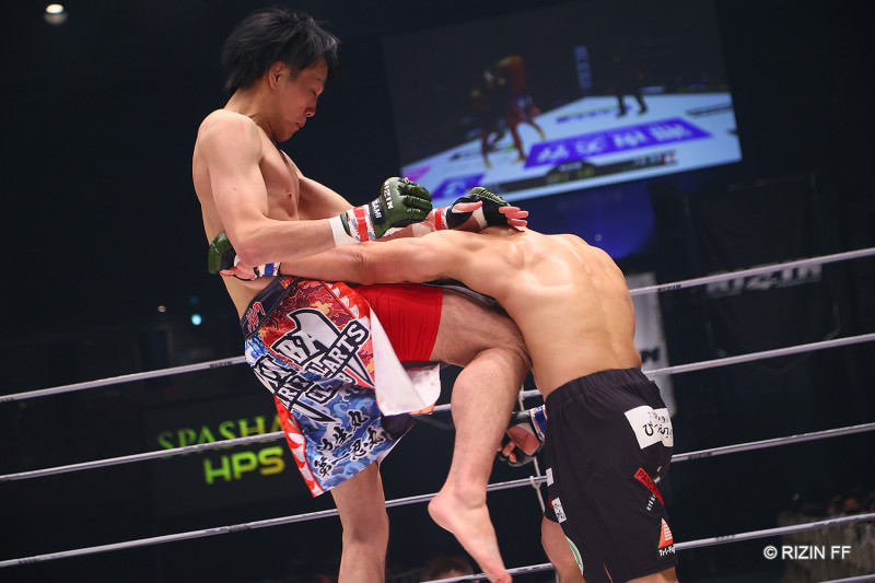 ヒザ蹴りを突き刺す大原