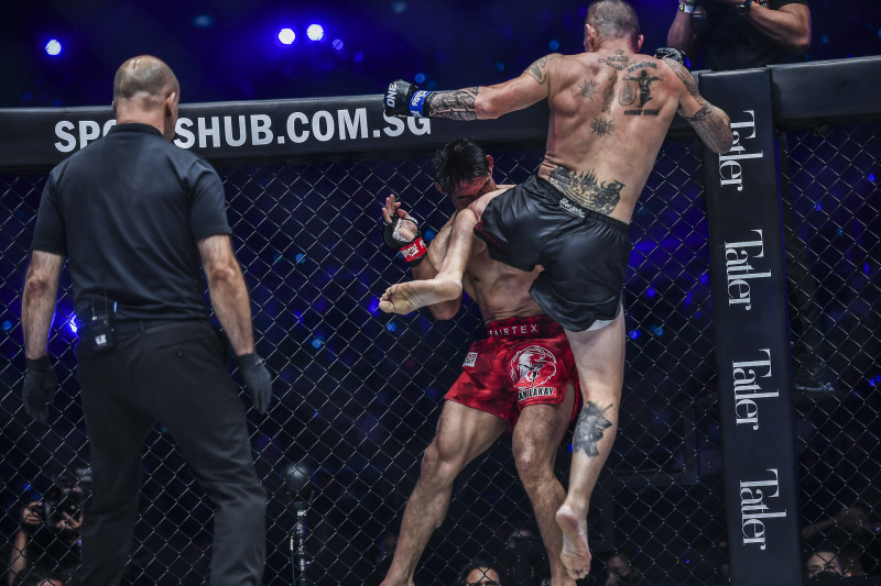 パーが飛びヒザ蹴り!