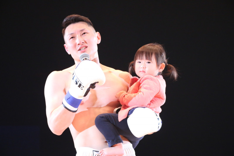 勝利した山田は娘をリングに上げた