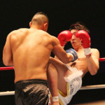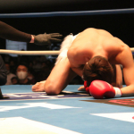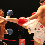 近距離でパンチを繰り出す星(左)