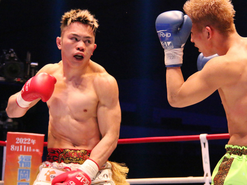 連打でTKO勝ちした不可思(左)