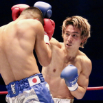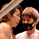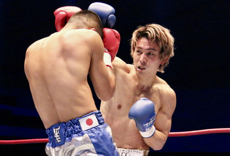 大岩(右)が怒涛のプレスで江川(左)の転向初勝利を阻止