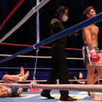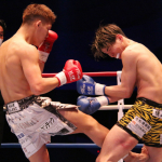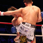 強烈なキックで加藤を苦しめる野杁