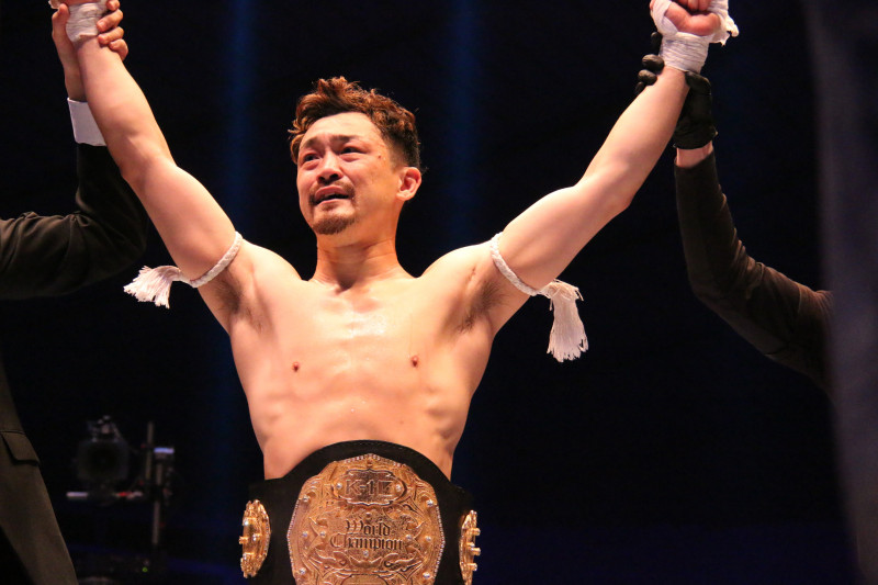 ベルトを巻き、感極まる大和