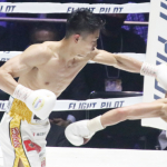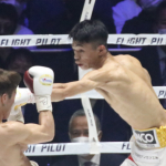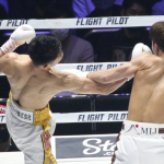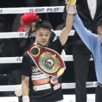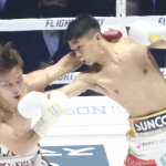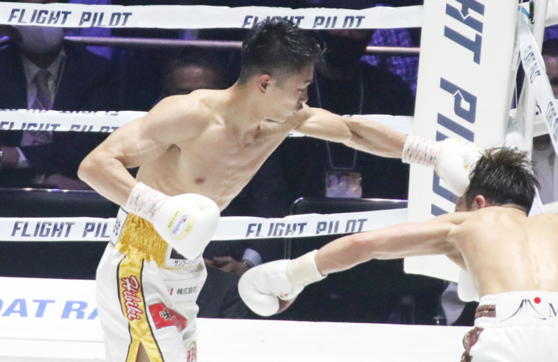 中谷のパンチの連打がクリーンヒットしTKO!頭部に食い込む瞬間