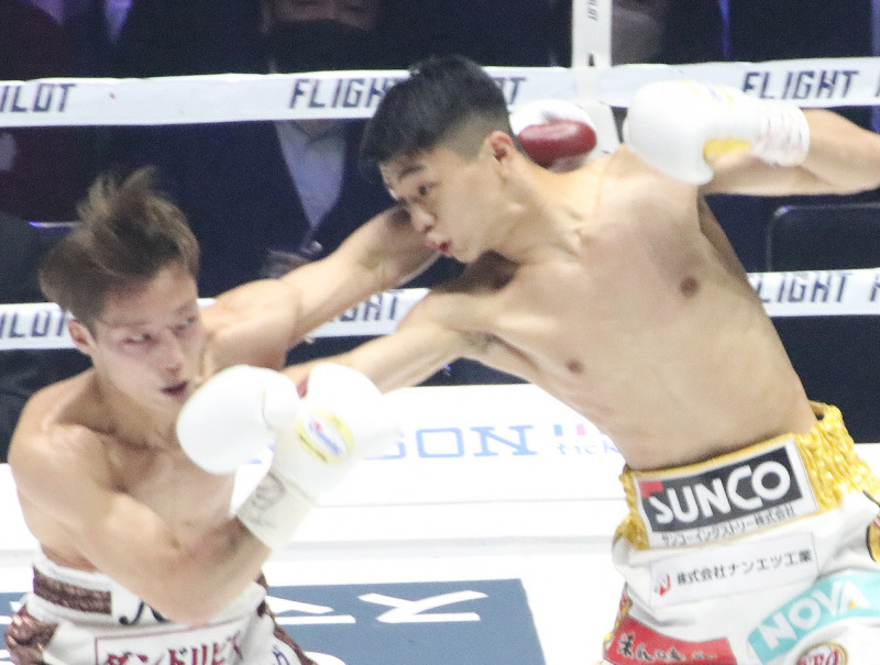 豪快なパンチを振るう中谷(右)