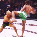 スタッツの左ハイキックのヒザがアーチュレッタの顔面を直撃した瞬間@bellatormmaより