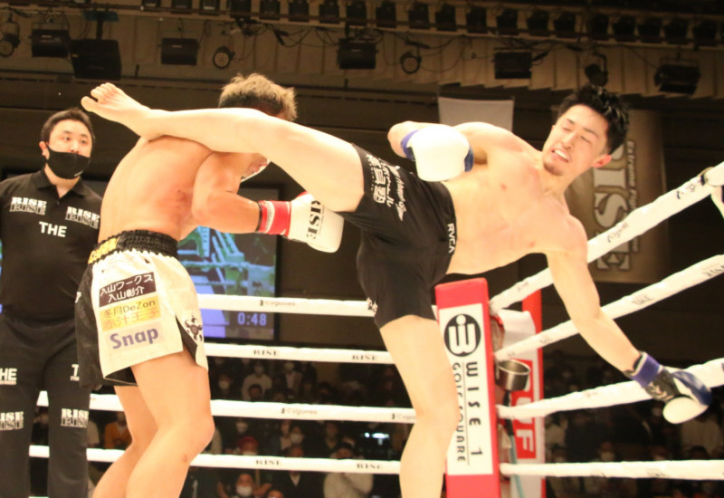 キックで攻める小野
