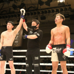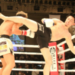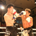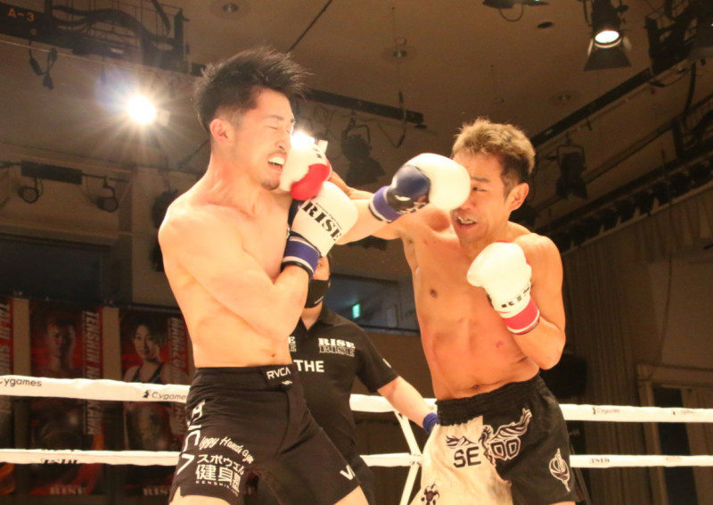 両者のパンチが交差する