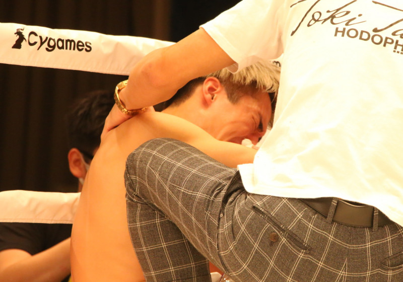 痛そうな表情の田丸