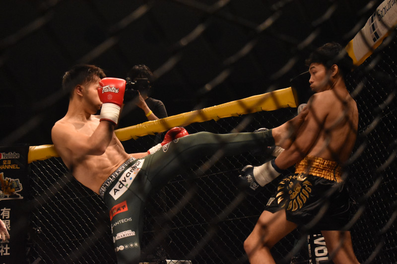 前蹴りを放つ内藤