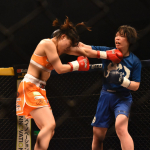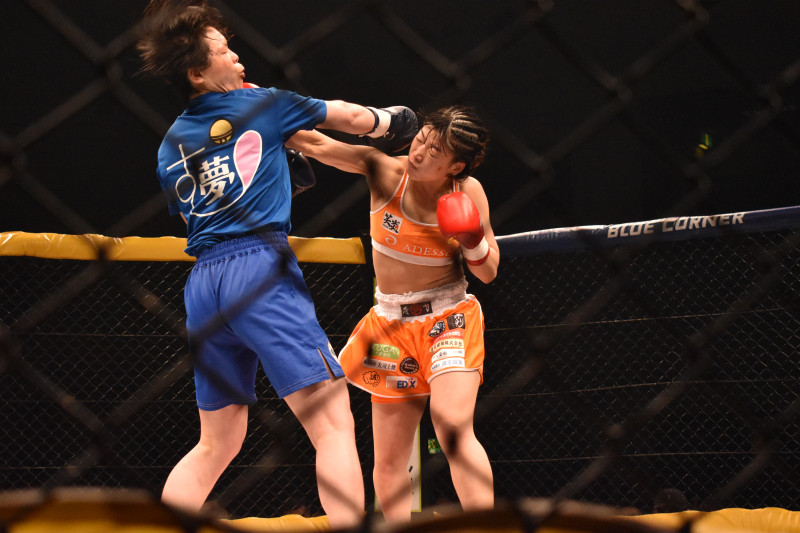 右ストレートを当てる鈴木