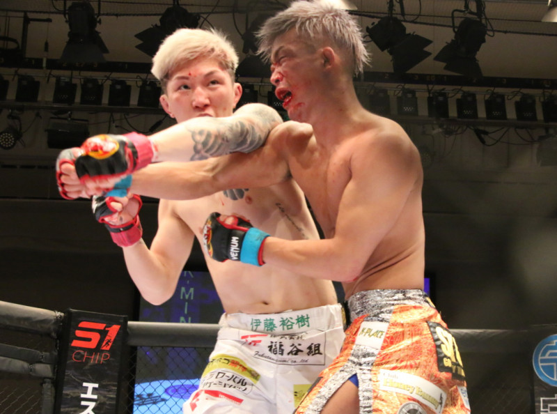 壮絶な殴り合い!伊藤(左)が制す