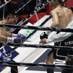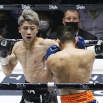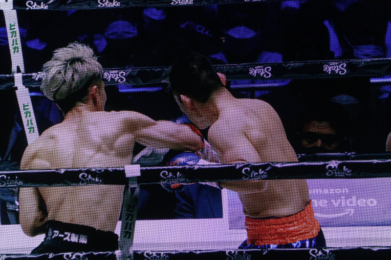 井上の1R目ダウンを奪ったテンプル直撃の右ストレート