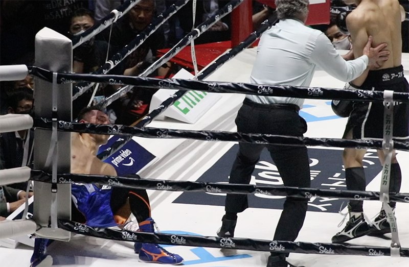 5、ロープ越しにドネアがダウン、レフェリーが即ストップした