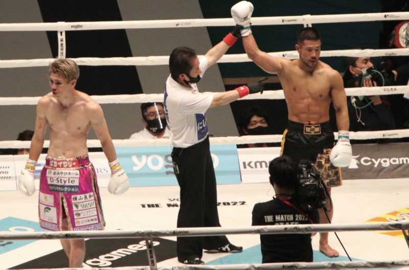勝利した中村、呆然とするレオナ