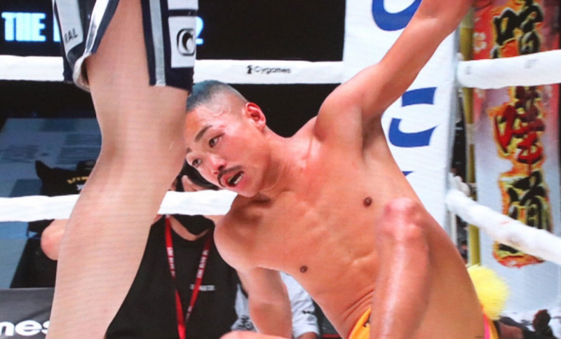 ダウンを喫する芦澤(会場内のオーロラビジョン映像より)