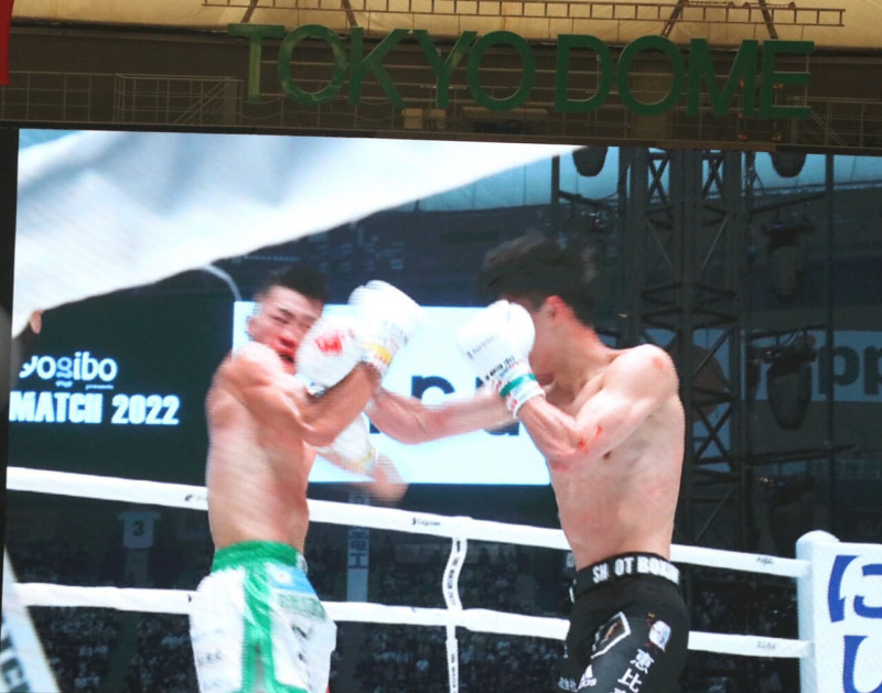 笠原のパンチがヒット!(会場内オーロラビジョンの映像)