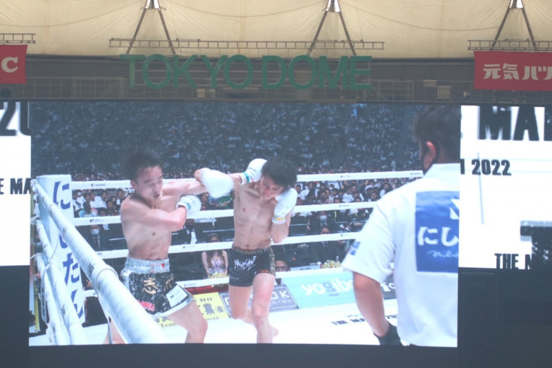 志朗の顔が揺れる(オーロラビジョンの映像)