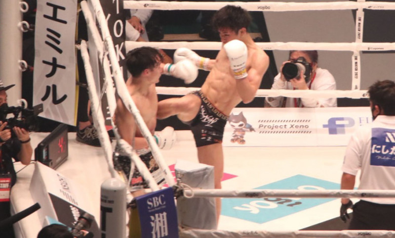 ロープを背負った志朗に飛び込む玖村