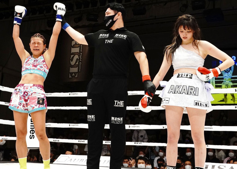 勝利に喜ぶerika♡(左)、肩を落とすAKARI(右)