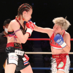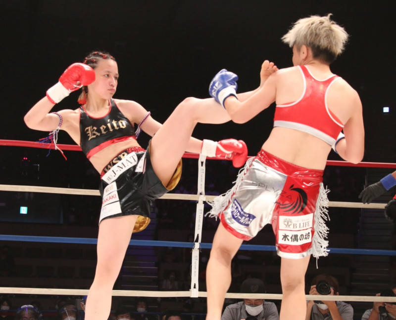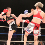 キックで攻めるケイト