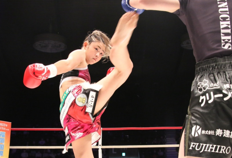 MOEがハイキックで攻める