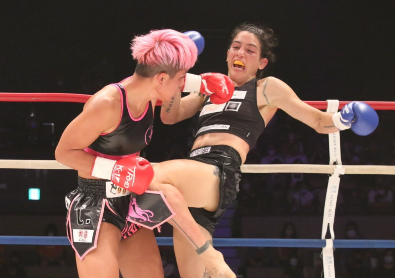 ヒザ蹴りで攻めるマンフレディ