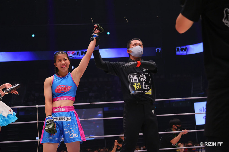 勝ち名乗りを受ける須田