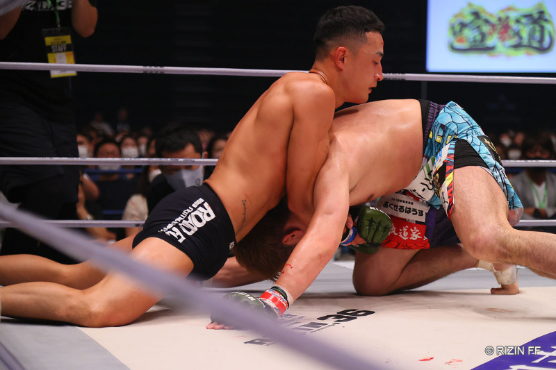 ジヨンがギロチンチョークを仕掛けるも昇侍は逃れる