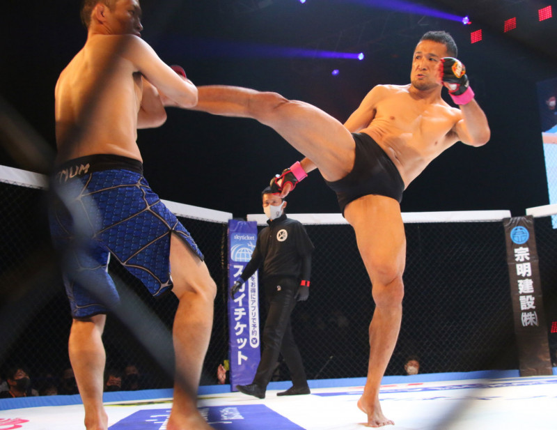 ミドルキックを蹴る中村