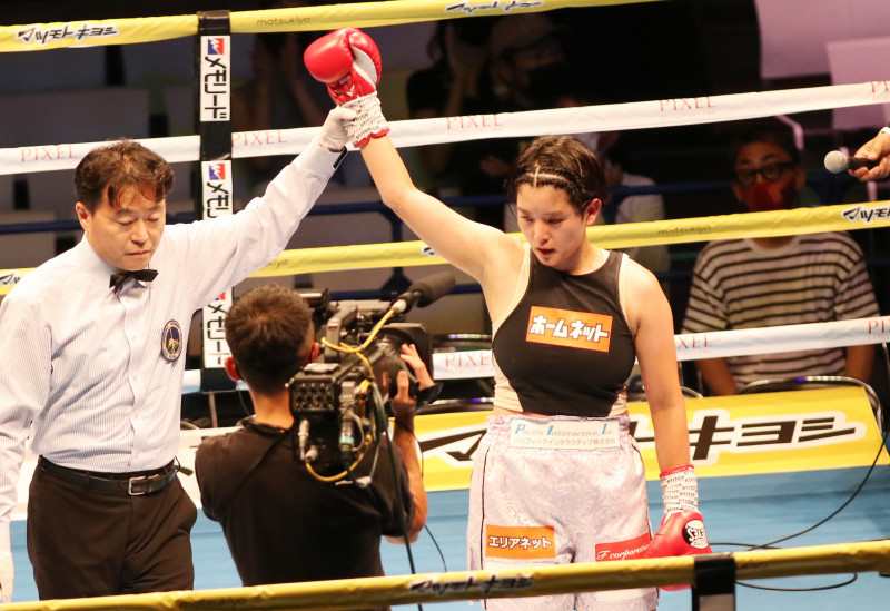 勝ち名乗りを受ける伊藤