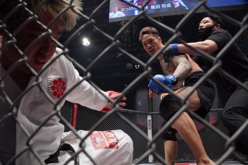 にっけん君2回目のダウンでレフェリーが試合を止めた