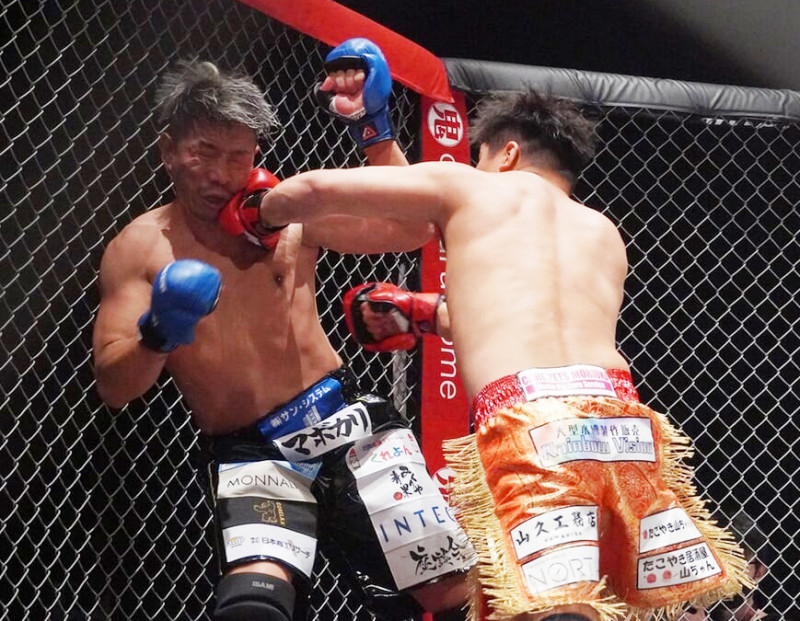 てるがパンチを叩き込む