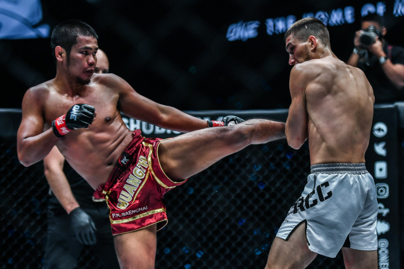 左ミドルを放つムアンタイ(左)©️ONE
