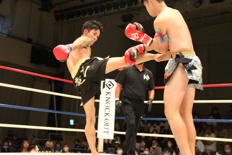 海老原はミドルキックで対抗したが