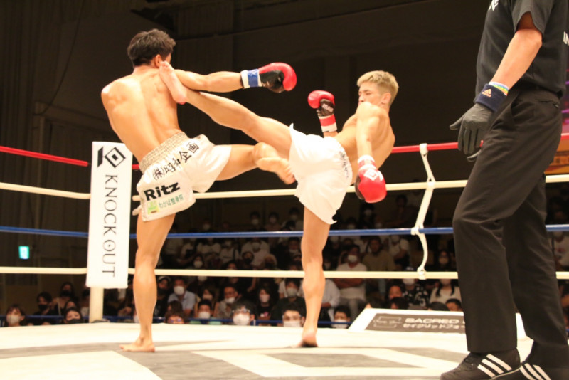 鈴木(左)は蹴りで応戦したが白幡に敗北