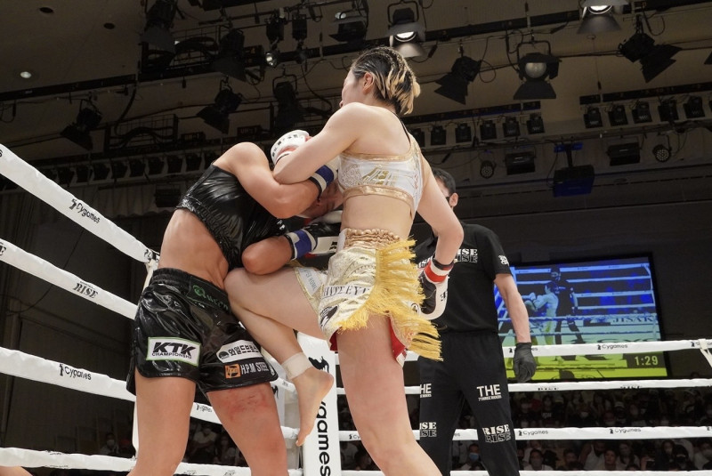 ヒザ蹴りを突き刺す小林
