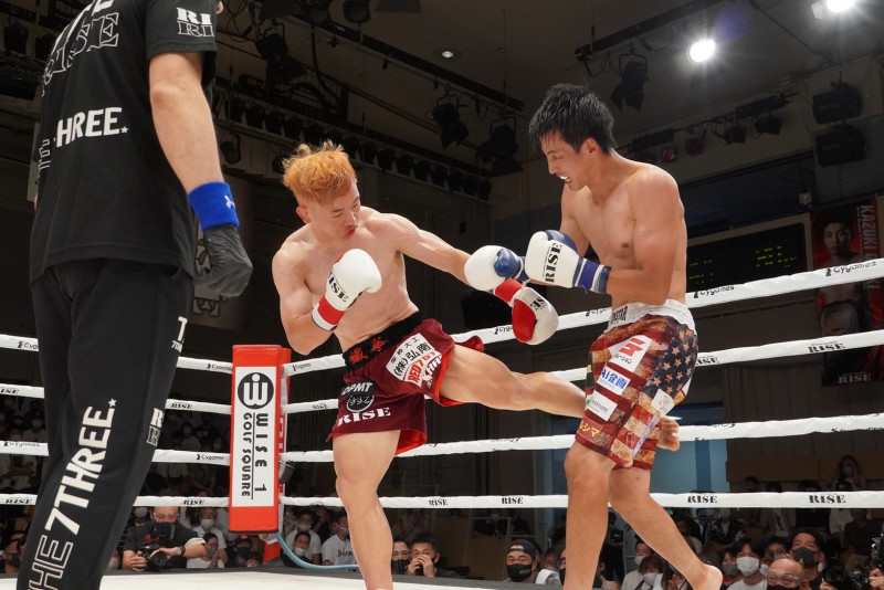 右の奥足ローキックを効かせるチャンヒョン