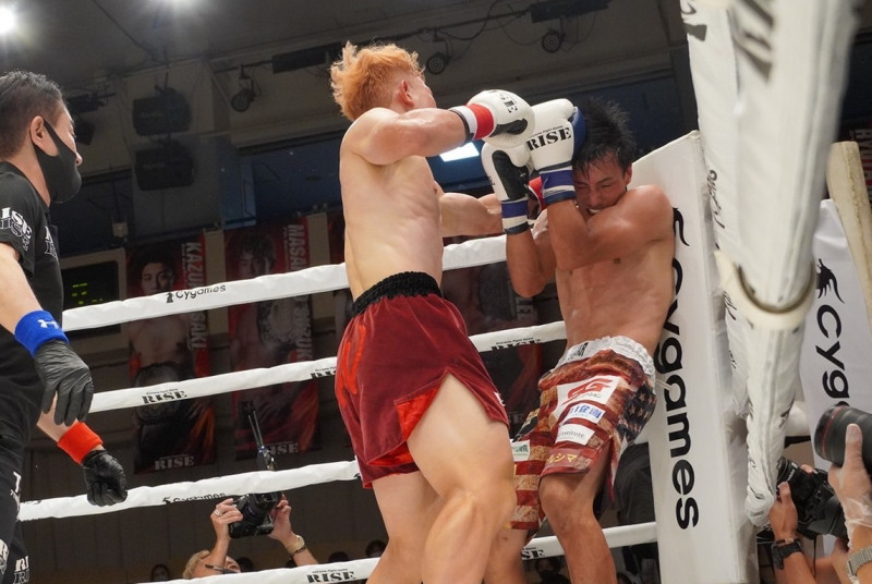 一馬をコーナーに詰めて釘付けに、合計3度のダウンを奪い返し逆転KO
