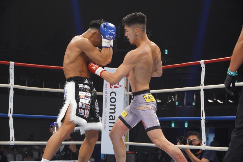 パンチを打ち込む篠原