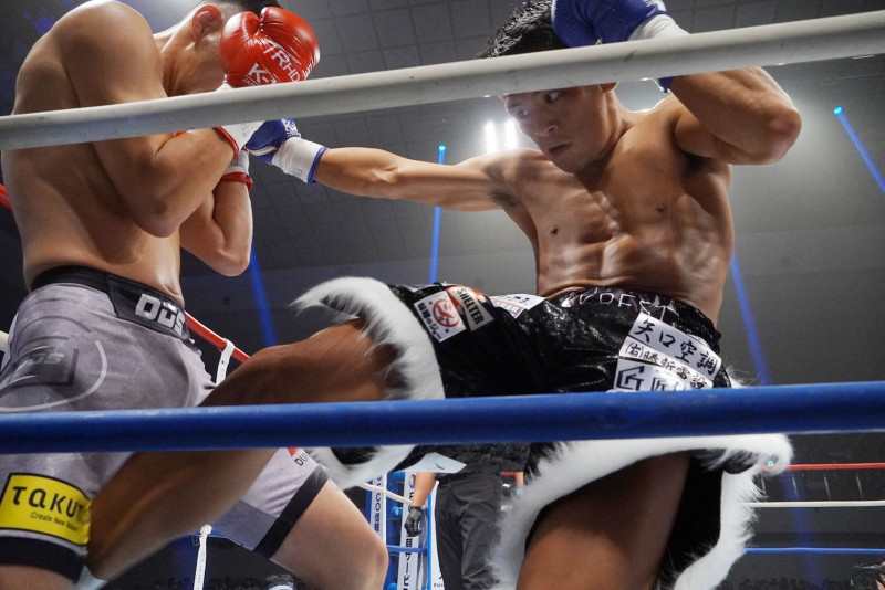 ローキックで攻める与座